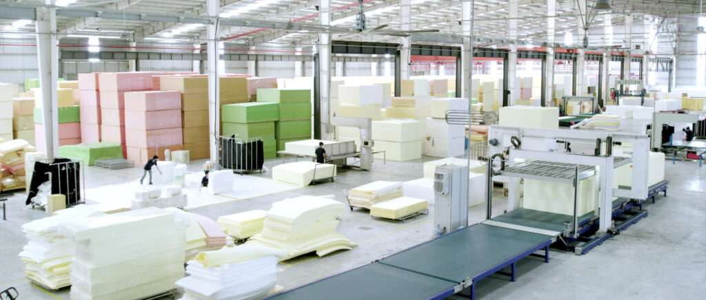 EVERGREEN HOME FURNISHINGS (VIETNAM) COMPANY LIMITED is a fully integrated foam manufacturer who specializing in the research, development, production and sales. Our 20,000 square meters factory is located in South Tan Uyen Expanded Industrial Zone, Tan Uyen City, Binh Duong Province, Vietnam. Our Vietnam factory has an automatic foaming line; multiple flat cutting and straight cutting equipment; three sets of integrated precision CNC special-shaped production lines; one sheet rolling material production line; one sheet automatic mattress compounding, compression and rolling packaging production line; one egg-shaped forming machine and other advanced production equipment. We can produce various products to meet each request for different customers.