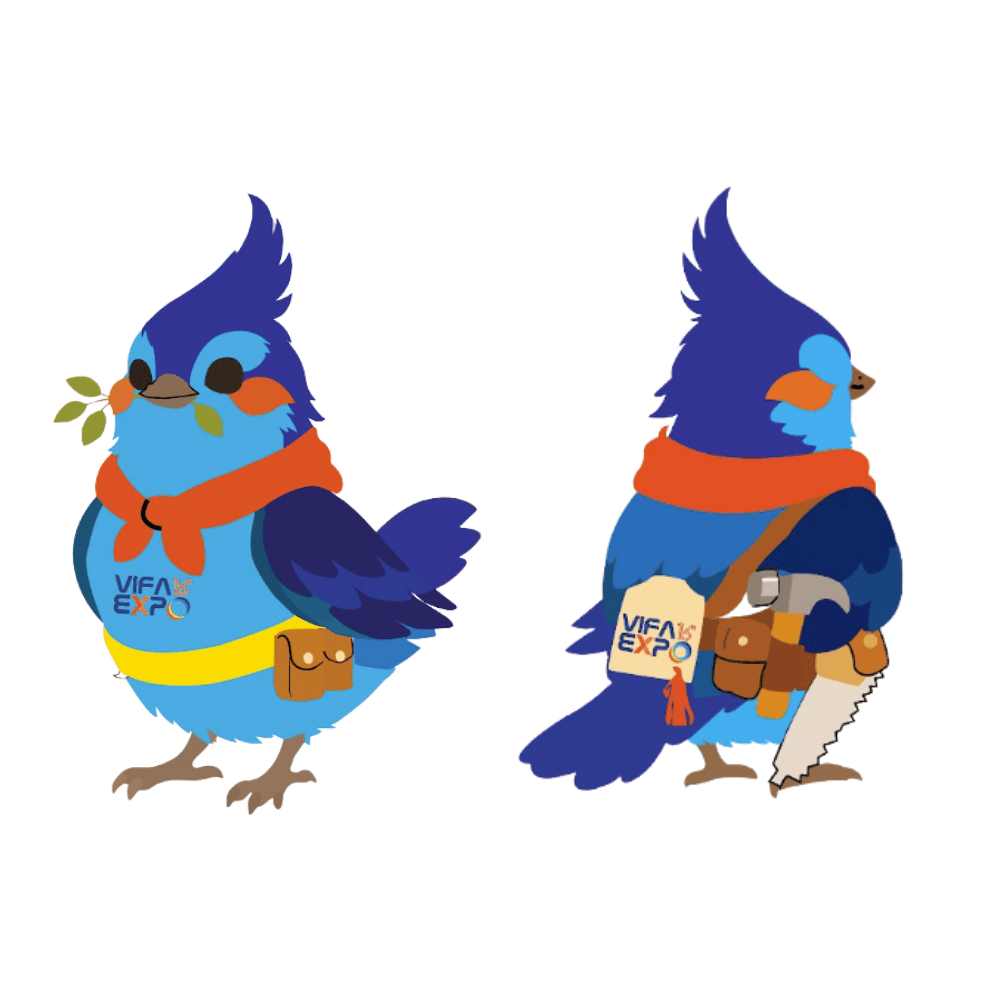Linh vật Gỗ Lam được xây dựng từ hình ảnh chú chim xanh năng động, mang dáng vẻ thân thiện và tràn đầy sức sống, đại diện cho tinh thần đổi mới của VIFA EXPO – nơi hội tụ của ngành gỗ và nội thất Việt Nam. Ngay từ cái nhìn đầu tiên, Gỗ Lam tạo thiện cảm bởi màu sắc tươi sáng, hình khối gọn gàng và biểu cảm gần gũi, phù hợp với không khí sôi động, cởi mở của một triển lãm mang tầm vóc quốc tế.